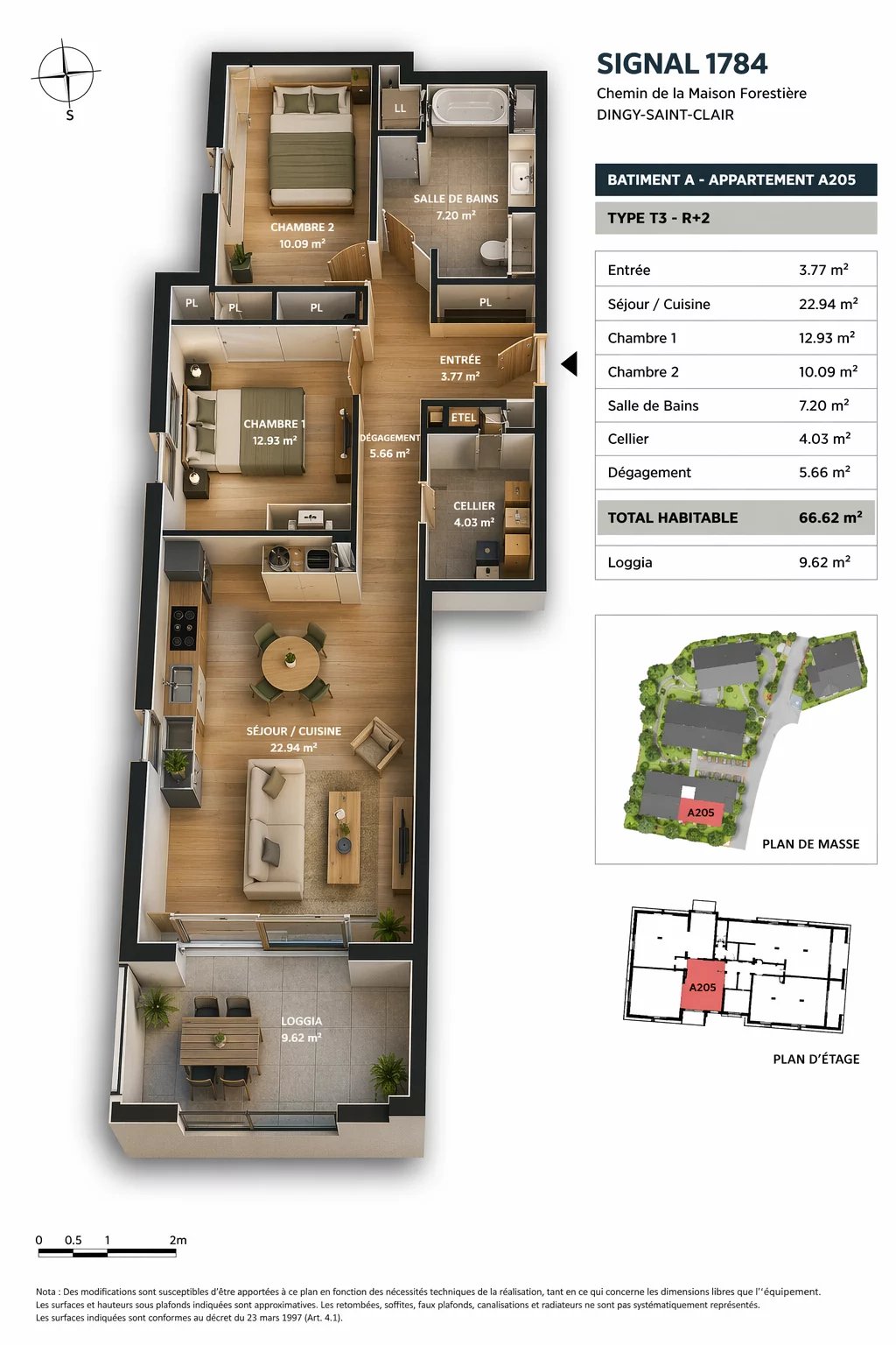 L’appartement se compose d’une pièce de vie lumineuse ouvrant sur une agréable loggia, véritable prolongement de l’espace de vie pour profiter des beaux jours en toute saison. L’espace nuit propose deux chambres confortables, ainsi qu’une salle de bains avec WC. Un cellier complète le bien, offrant un espace de rangement fonctionnel au quotidien. Son exposition sud garantit une luminosité optimale tout au long de la journée.