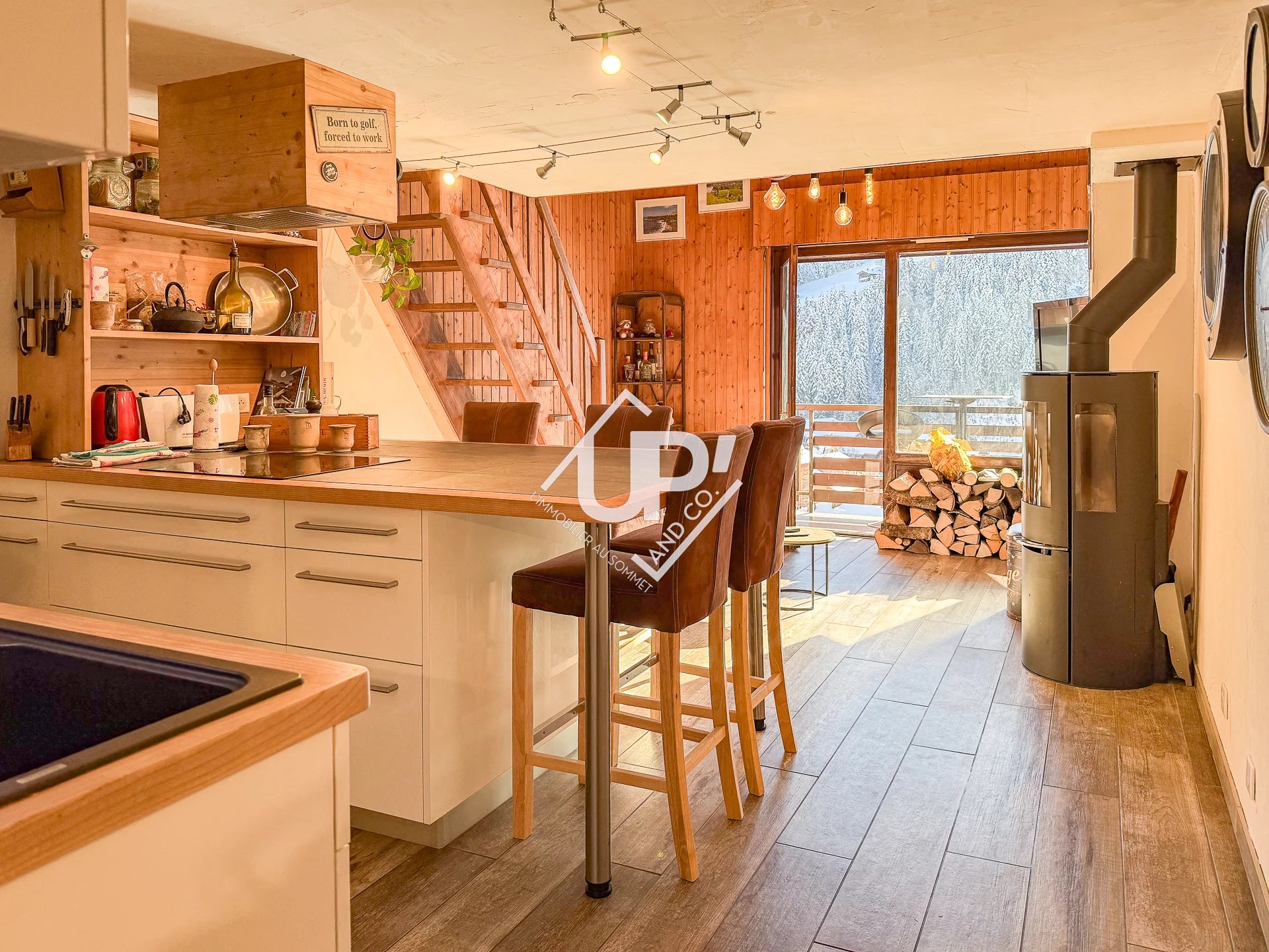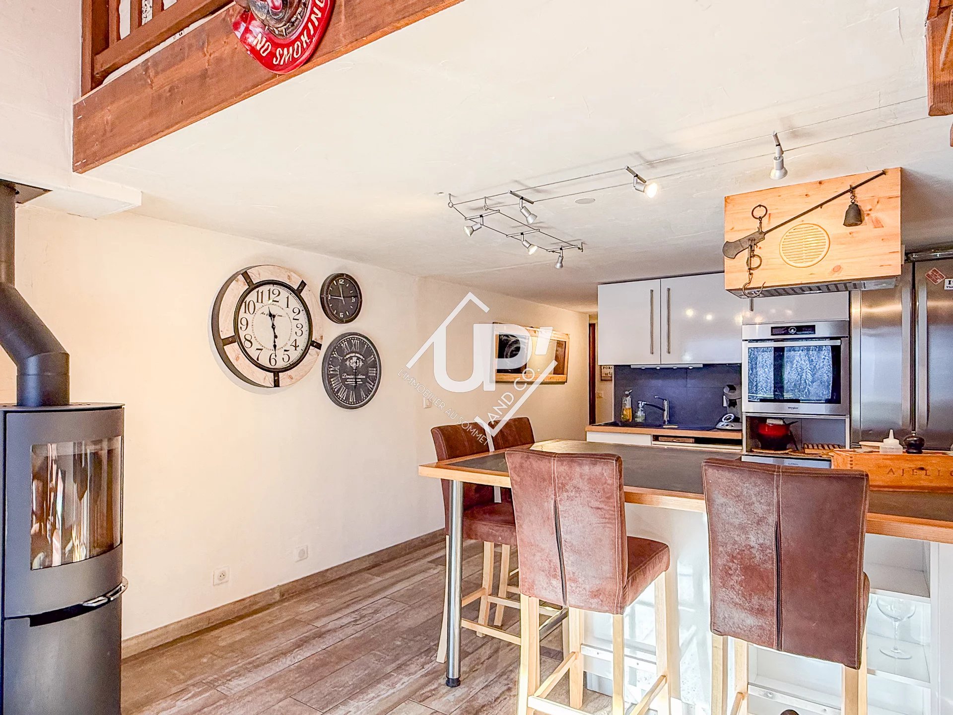 Lire la suiteAu premier niveau, vous trouverez une belle pièce de vie lumineuse d'environ 19m² composée d'une cuisine astucieusement aménagée avec un îlot central, d'un coin salon cosy doté d'un poêle mixte (granules et bois) donnant sur un balcon exposé plein sud, offrant une vue magnifique sur le village et la chaîne des Aravis. Découvrez également une belle chambre avec rangements, une salle de douche et un WC séparé.